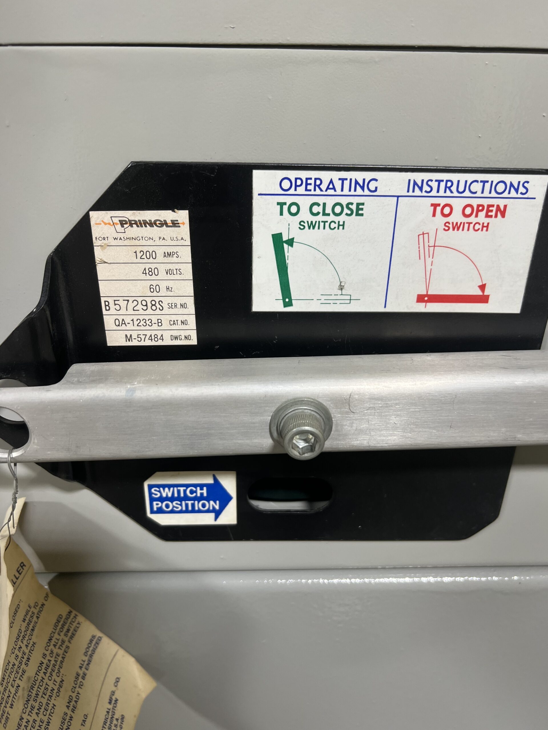 Maker: The Cleveland SwitchBoard Co. 1200 Amp Fused Pringle Switch Enclosed Fully Refurbished and Tested